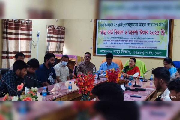 জুলাই-আগস্ট গণঅভ্যুত্থানে আহত যোদ্ধাদের মাঝে খাগড়াছড়িতে স্বাস্থ্য কার্ড বিতরণ।