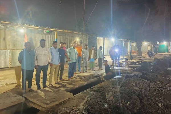 ভজনপুর বাজারে রাত ভোর মান উন্নয়নে এর কাজ চলছে