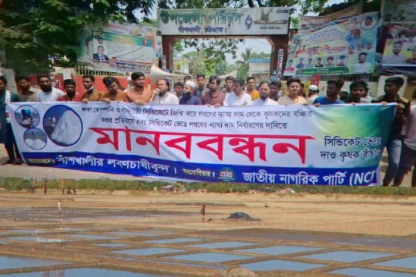 লবণ শ্রমিকদের ন্যায্য মুল্যের দাবিতে বাঁশখালীতে মানববন্ধন