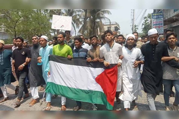 গাজায় ইসরায়েলি হামলার প্রতিবাদে ঝালকাঠি জেলাজুড়ে বিক্ষোভ