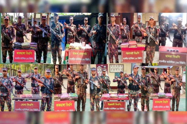 বিজিবি’র অভিযানে সাতক্ষীরায় ভারতীয় ঔষধ, শাড়ি ও ট্যাবলেটসহ মালামাল আটক