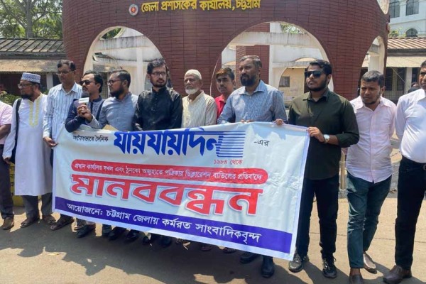 যায়যায়দিন পত্রিকার ডিক্লারেশন বাতিলের প্রতিবাদে চট্টগ্রামে মানববন্ধন