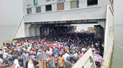 ফেরী চলাচল বন্ধ : দৌলতদিয়ায় নদী পারের অপেক্ষায় শত শত যাত্রী