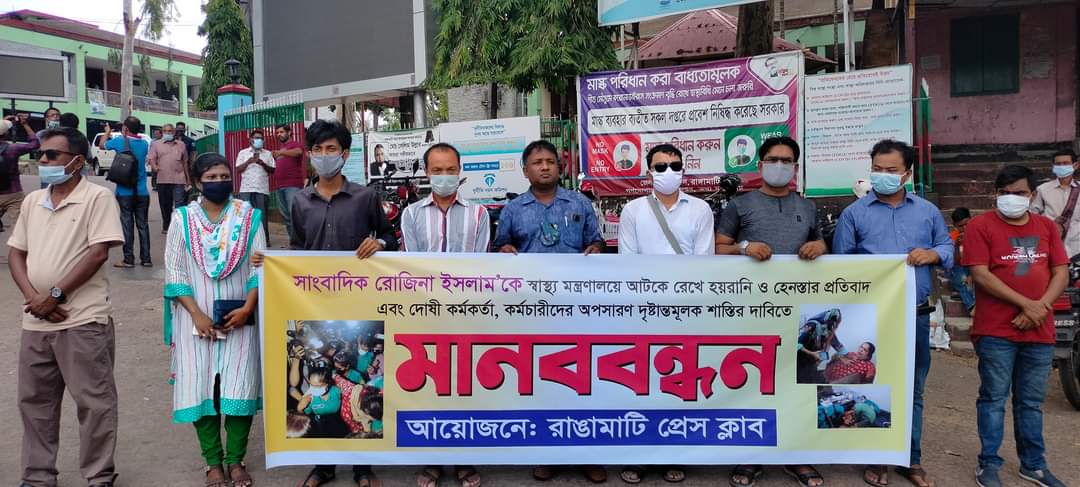 রোজিনা ইসলামের মুক্তির দাবীতে রাঙ্গামাটিতে গণমাধ্যম কর্মীদের মানববন্ধন