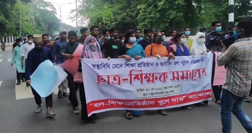 বিশ্ববিদ্যালয়-আবাসিক হল খোলার দাবিতে টিএসসিতে সমাবেশ