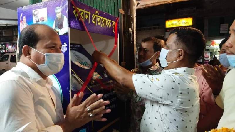 রাঙামাটিতে করোনা প্রতিরোধক দুটি হ্যান্ড স্যানিটাইজার ও মাস্ক বুথের উদ্বোধন