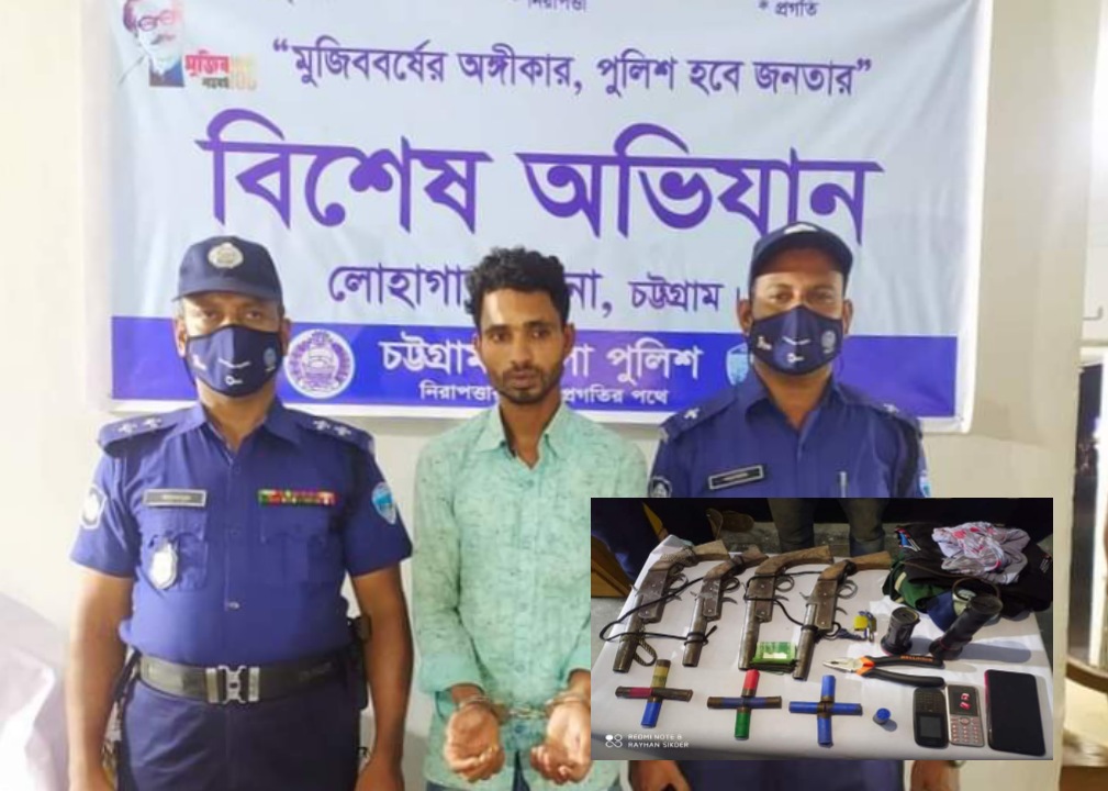 লোহাগাড়ায় দেশীয় তৈরী ৪টি অস্ত্র-কার্তুজসহ ডাকাত দলের সদস্য আটক