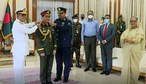 জেনারেল র্যাংক ব্যাজ পরানো হলো নবনিযুক্ত সেনাপ্রধানকে