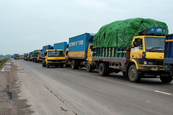 কঠোর লকডাউনেও সিরাজগঞ্জের মহাসড়কে যানজট