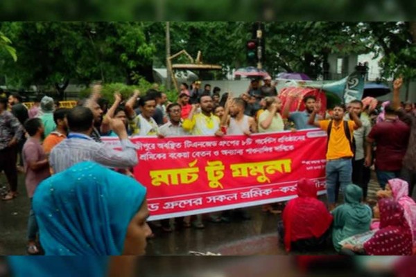বকেয়া বেতনের দাবিতে কাকরাইল মোড়ে গার্মেন্টস শ্রমিকদের বিক্ষোভ